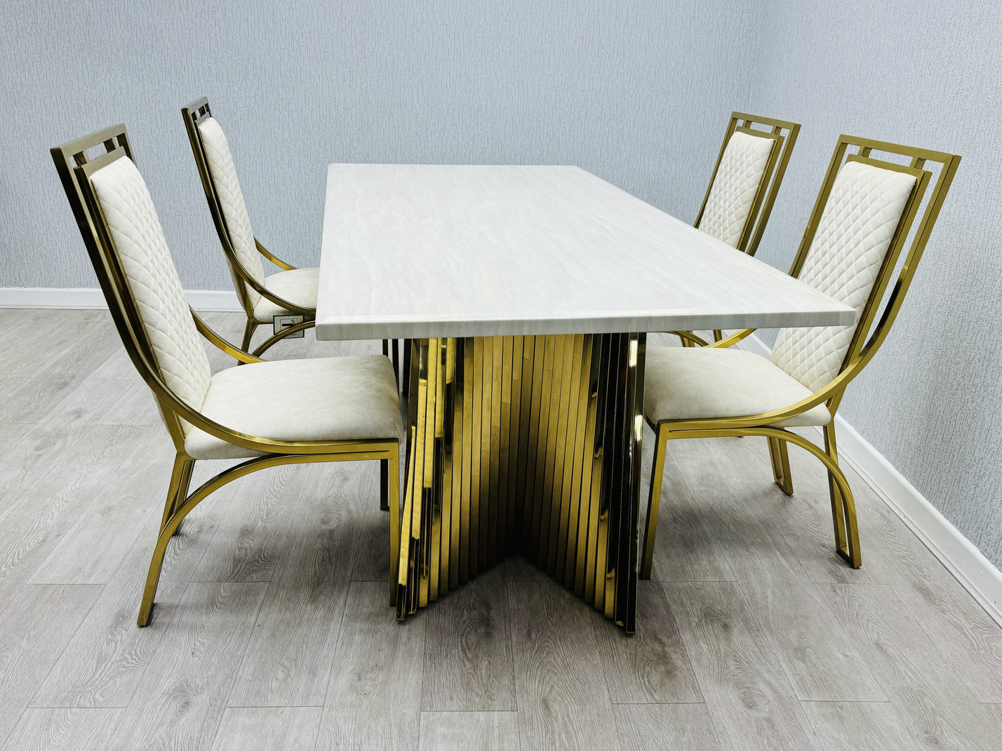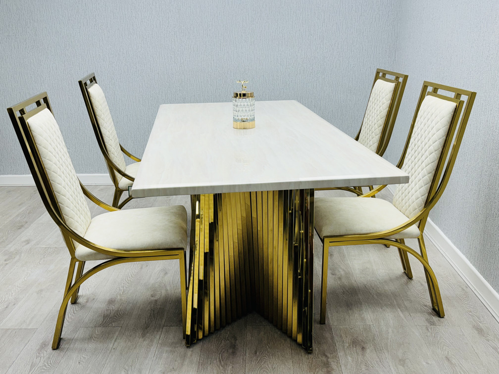 Ravello 180cm Cream & Gold Marble Dining Table