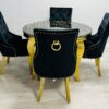 Sofia 1.1m Round Black & Gold Marble Dining Table